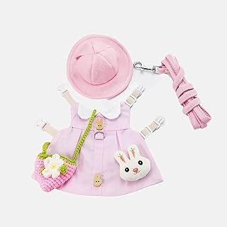 ウサギ 服 ハーネス PU リードセット 帽子 ショルダーバッグ モルモット 猫 ハムスター 可愛い うさぎ 服 小型 ハーネス&リードセット お出かけ 着ぐるみ 簡単着脱 迷子防止 牽引ロープ 記念撮影 小動物 薄手 仮装 ペット用品(L,ピンク)