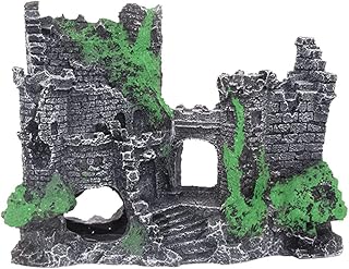 COOLBOTANG 水槽用 オブジェ アクアリウム オーナメント 爬虫類シェルター 樹脂石製 水槽オーナメント 装飾 オーナメント アクアリウム オブジェ 古代 遺跡 神殿 建物 苔や洞窟 魚の隠れ家 水族館 ジオラマ 水槽 インテリア 置物 飾 り
