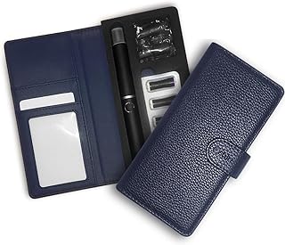 プルームテックプラス Ploom tech ploomtech plus 収納ケース 財布 カード 収納ケース 本革ケース 軽量 プルームテックプラス 完全収納 電子タバコ VAPEケース ploom+ 手帳 ケース 手帳型 プルームテック マウスピース5個付け (Blue)