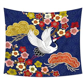 タペストリー 多機能壁掛け 2x1.5m 日系風 鶴が飛ぶ 桜の花 青い背景 窓カーテン 布 インテリア飾り 部屋 寝室 客間 ホーム飾り おしゃれ 新居祝い 丸洗い可 生放送用 youtube 個性ギフト