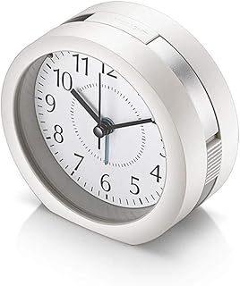 アナログ目覚まし時計 4インチ 超静音 チッキング 小さな時計 スヌーズとナイトライト付き 電池式 旅行用目覚まし時計 シンプルデザイン 寝室 寝室 デスク用 (ホワイト)